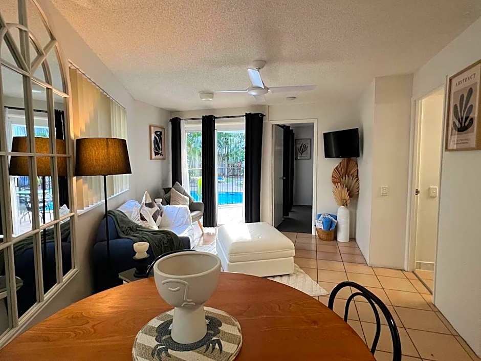 This spacious apartment features a private balcony, cooking facilities. It may have views of the pool or garden.
